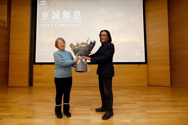 中央美术学院副院长苏新平向李瑞年先生家属代表李瑞年先生女儿、首都师范大学美术学院副教授李蒂雅女士颁发捐赠证书