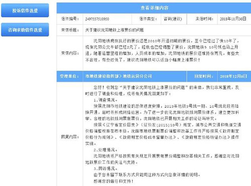 记者拨打沈阳地铁运营分公司办公室电话,一名工作人员表示,地铁票价“肯定不是我们单方来定,暂时没有价格变动”。另据《辽宁省定价目录》(2018年)显示,城市轨道交通票价只能由市、县人民政府定价。截至发稿,上述12345市民服务热线暨营商环境诉求平台已搜索不到上调地铁票价的建议及回应。