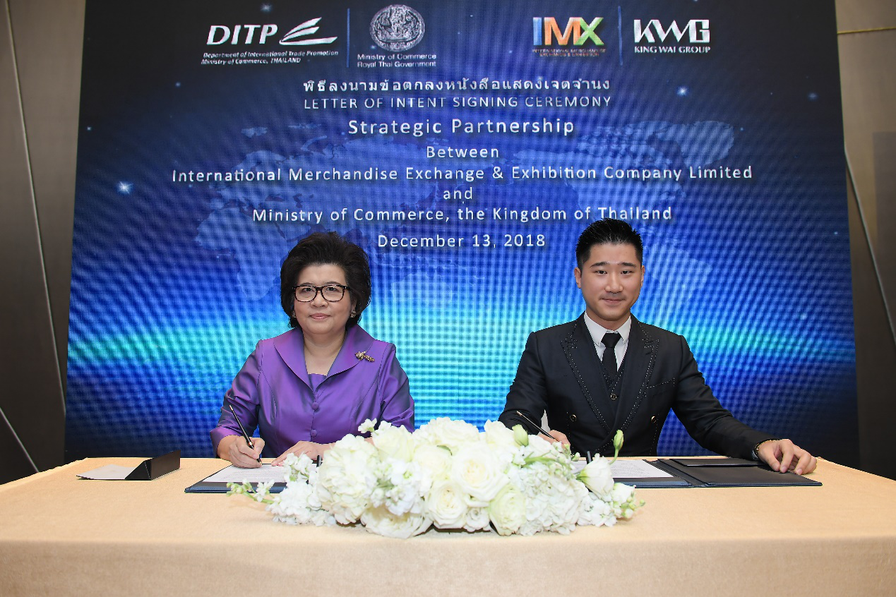 人民政协网北京12月14日电 随着首届中国国际进口博览会落下帷幕,围绕中国进口业务的国际合作日益加速。由陈经纬博士打造的中国商界巨擘“香港经纬集团”旗下子公司 “全球商品博览汇(IMX)”,13日与泰国商务部就结成战略合作伙伴签署合作意向书(LOI),旨在推动超过60万家泰国中小企业通过IMX麾下的跨境电子商务平台KJT.COM和跨境供应链服务将泰国商品便捷地进入中国市场。