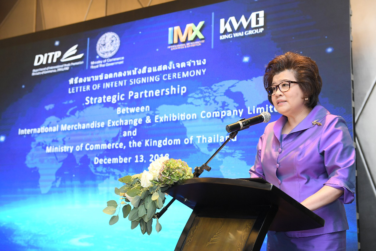 此次签署仪式是继泰国商务部成功地组织贸易代表团参观2018年11月上海进口博览会之后的又一重要活动。期间贸易代表团参访了“全球商品博览汇(IMX) ”所设的泰国馆。此次参访以及在泰国馆展出的泰国特色商品所引发的积极反响,是此次签约的重要推动因素。