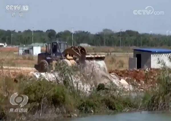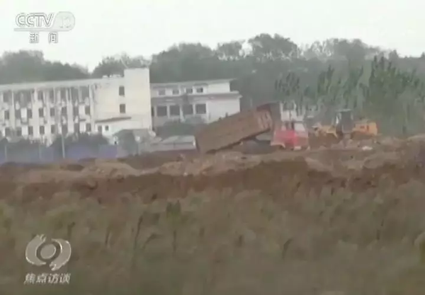 在彭泽县矶山工业园西侧地块,推土机、挖掘机、运土车正在挖山、运土、填江。据附近村民反映,该区域原本都是村庄、农田、山林和水塘,部分已平整的区域也有多家企业正在施工?! ?/p>