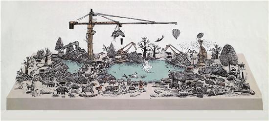 王觅 城市 平版 70×110cm 2017年以宽泛的态度和观念来看“工业版画” ■张新英(关山月美术馆学术部主任)