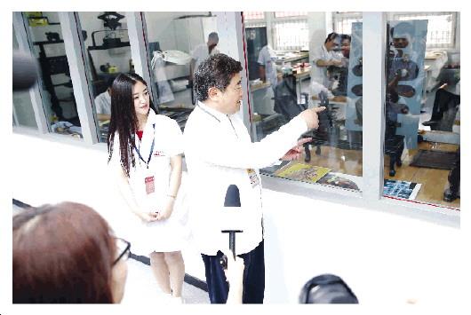 图②为单霁翔带观众参观故宫文物医院。