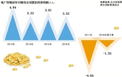 新京报记者注意到,自2007年起,电广传媒的业绩已经连续10年处于盈利状态。直到2017年,电广传媒当年归属于上市公司股东的净利润约为-4.64亿元,同比下滑239.37%;归属于上市公司股东的扣非净利润约为-5.07亿元,同比下滑308.62%。