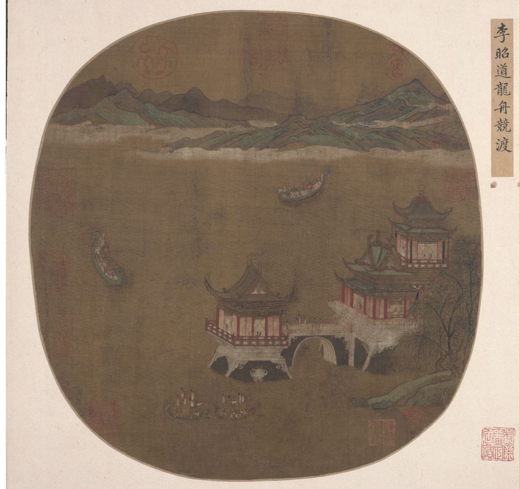 唐·李昭道《龙舟竞渡图》:画风巧赡精致