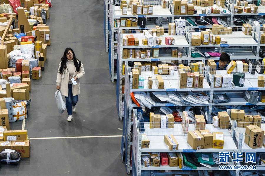南京航空航天大学学生在校园临时快递取件点领取快递(11月13日摄)。 新华社记者 李博 摄