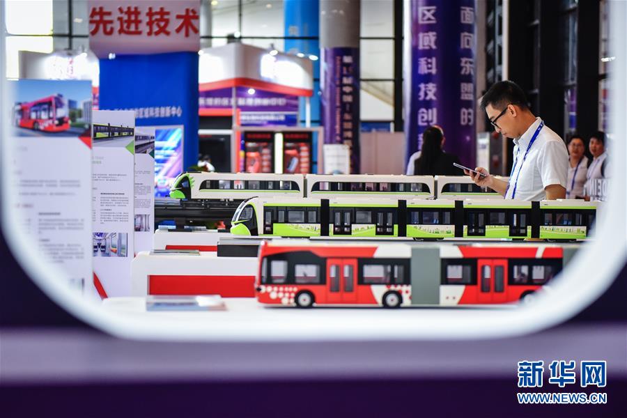 在广西南宁国际会展中心展出的中车集团的新型公共交通车辆模型(9月13日摄)。新华社记者 李芒茫 摄