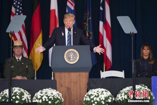 资料图:美国总统特朗普发表讲话。中新社记者 廖攀 摄