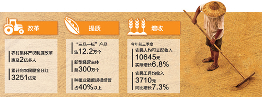 这一年,以农业供给侧结构性改革为主线,由增产导向转变为提质导向,质量兴农、绿色兴农、品牌强农正成为农业发展的主旋律。这一年,深化户籍制度改革,推进异地就医结算,农民工享受到更多公共服务。这一年,整治农村人居环境,大病救治范围扩大,农村民生持续改善……