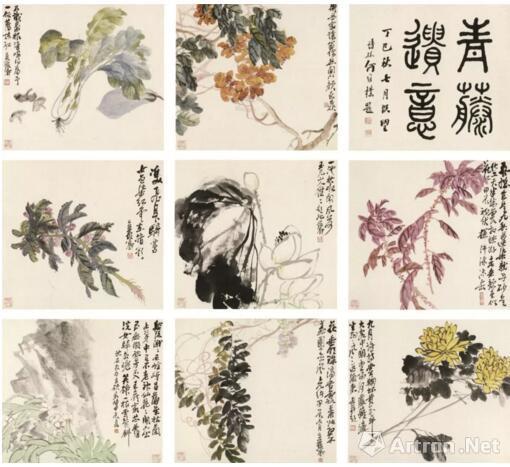 (清)吴昌硕 设色花卉册页 纸本设色 纵37.9厘米横41.7厘米 1904年 浙江省博物馆藏