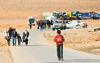 12月24日,在叙利亚大马士革以北的叙黎边境附近,难民从黎巴嫩返回叙利亚。当天,超过1000名叙利亚难民从黎巴嫩启程返回叙利亚。