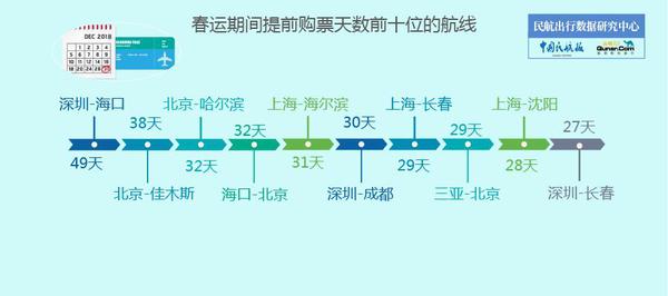返乡不好买机票,回程更需早做准备。数据显示,针对2019年春运返程,旅客早有准备,??凇本?、三亚——北京航线的提前预定天数分别达到32天、29天,目前从多个网站的机票预订情况看,这两条航线的机票购买热度依旧不减。民航出行数据研究中心提醒广大旅客,不仅要抓紧买去程,还需为回程早做准备。