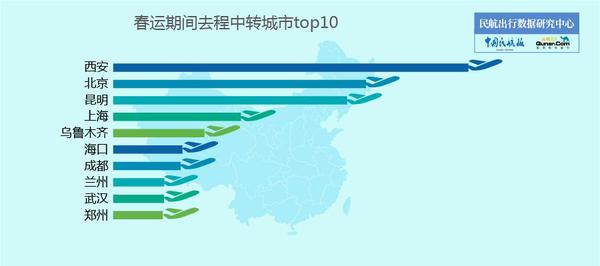 由于航线热度、航班数量等多种因素,让直飞回家的机票不好买?!冻鲂性げ獗ǜ妗废允?,春运期间,部分旅客选择通过中转方式回家的趋势上涨。统计显示,去程中转热度最高城市为西安、北京、昆明,而返程中转热度最高城市为北京、成都和上海。