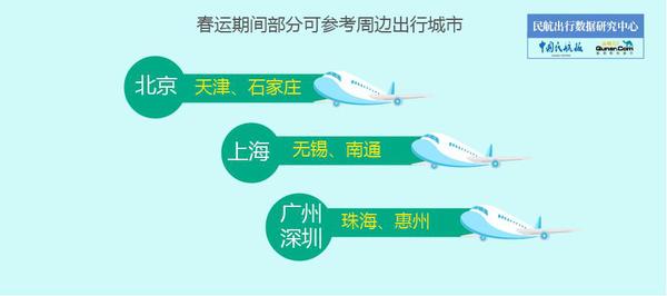 北、上、广、深作为“春运大迁徙”的重要出发城市,机票往往供不应求,取道周边城市出发成为春运回家的另一种选择。