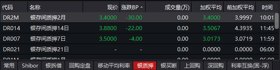 2天、3天、4天、7天期回购利率分别大跌359基点、419.5基点、388基点和433基点;14天回购利率下行230基点,28天、91天品种分别跌108.5基点和34.5基点。