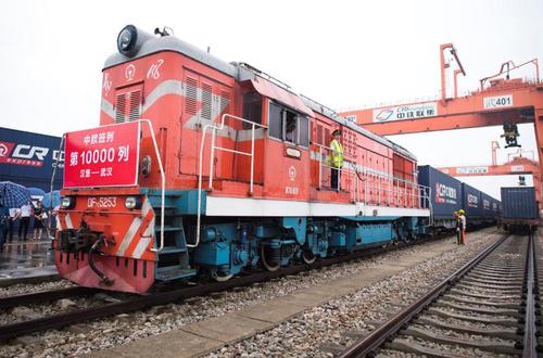 2018年8月26日,随着X8044次中欧班列(汉堡—武汉)到达武汉吴家山铁路集装箱中心站,中欧班列累计开行数量达到10000列。 来源:新华社