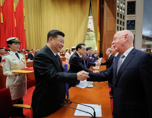 12月18日,庆祝改革开放40周年大会在北京人民大会堂隆重举行。习近平在大会上发表重要讲话。这是习近平等为获得中国改革友谊奖章人员代表颁奖。来源:新华社