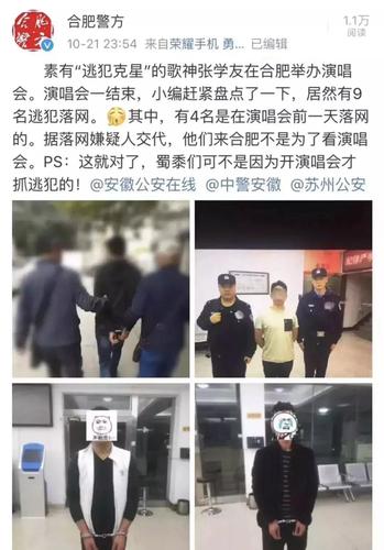 10月21日安徽合肥演唱会:9名逃犯落网。