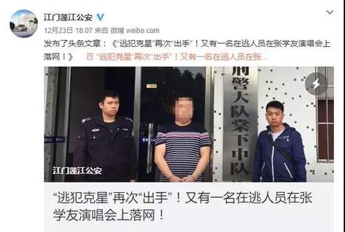 原标题:“歌神张学友”神助攻:2018年演唱会80余在逃人员被抓