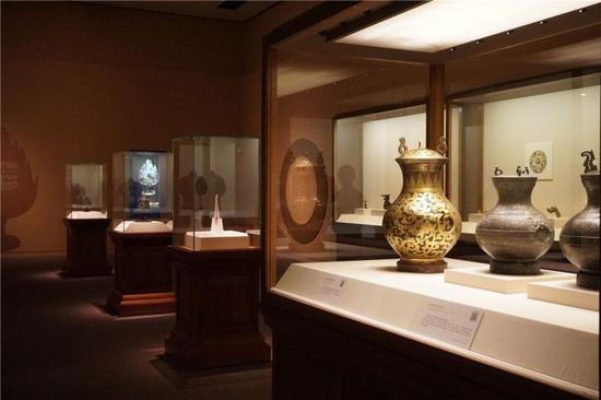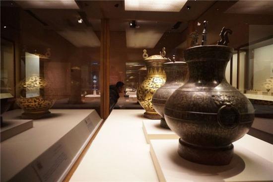 整个展览以刘胜的人生轨迹为叙事线索,融入西汉盛世的大时代背景,共分为“盛世风貌”“王国往事”“长乐无极”“因山为藏”“发现靖王”五个单元。共展示了包括来自河北博物院的149套722件文物和中国国家博物馆收藏的2件满城汉墓出土的一级文物,总数共计151套724件,一级品数量多达62套(件),占比41%,观众耳熟能详的满城汉墓精品文物几乎悉数亮相,如30几年来从未走出河北博物院的刘胜金缕玉衣,以及铜朱雀衔环杯、错金铜博山炉、错金银鸟篆纹壶、鎏金银蟠龙纹壶、透雕双龙纹白玉谷纹璧等,展出文物规格之高,在满城汉墓文物参与的国内外交流展中是史无前例的。为此,河北博物院副院长徐艳红也谈到:“我们从来没有因为外借展品而关闭过自己馆的基本陈列,因为这次的合作,我们已经关闭了馆里的基本陈列,是下了很大决心的。不过我们与国家博物馆的合作是双向的,2019年1月份,马上将在河北博物院举办‘中国国家博物馆馆藏明清书画’展,我们期待双方未来在更多方面、更深入的合作?!?/p>