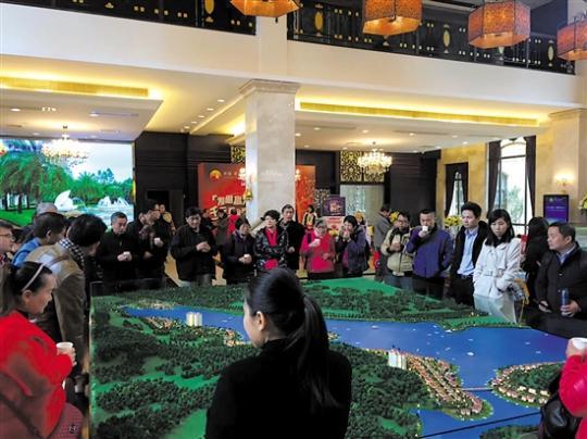 如花都区赤坭镇的祈?;平鸷0犊畔壑行暮脱宸浚淙?,元旦期间并未公布价格,但开发商承诺将以“惊喜价格”开销,祈福业主还有额外9.8折优惠。一个月前,祈福集团旗下有两个楼盘都以很有吸引力的价格开盘,有此背书,再加上该楼盘元旦期间还有免费看楼车、免费高尔夫推杆等活动,因此吸引不少买家到场。