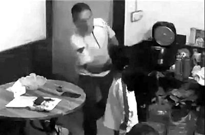 父亲刘某华打女儿(视频截图)