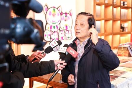 韩美林接受中央电视台、北京电视台等多家媒体的采访