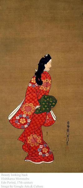 十七世纪后期,被后世成为“浮世绘之祖”的日本版画家菱川师宣 (ひしかわ もろのぶ,Hishikawa Moronobu) 将刚刚普及的版画印刷技术第一次运用到艺术中,并以作品《見返り美人圖(回眸美人图)》震惊了日本艺术界,随着越来越多的艺术家运用版画印刷的手法进行创作,日本艺术史中著名的”浮世绘“时期也正式开始了。