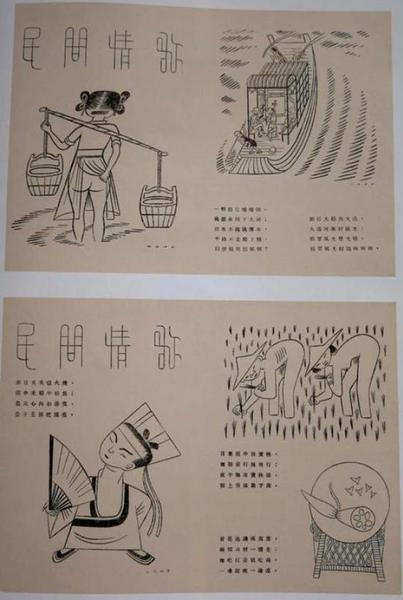 思忖反复,终于恍然大悟:鲁迅对张光宇的沉默中,包含对这位年轻艺术家超人才华的欣赏与喜爱,就像他在自家的卧室里,挂放日本的浮世绘和西方现代颓废派的杰作,秘不示人一样。更何况,张光宇的绘画不只有描绘人情人性的《民间情歌》,更有维护正义、针砭黑暗的警世之作《光宇讽刺集》。