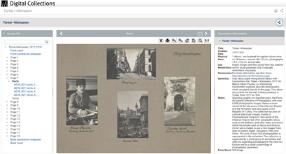 还有60多部摄影相册进行了数字化处理,我们因此有机会阅读那些曾在奥斯曼土耳其帝国旅行的收藏家和摄影师们独特的私人记叙。在相册“土耳其=小亚细亚1917-1918”(Türkei= Kleinasien 1917-1918)中有一张照片:一位德国军官将他的照片献给了一个遥远的“心爱的宝琳”(beloved Pauline)。这份相册文件证明了亚美尼亚大屠杀期间德国军队在土耳其的存在,这与那位军官的浪漫奉献形成鲜明对比。
