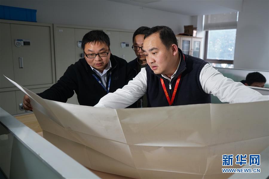 在中船重工第七〇二研究所,叶聪(右)和同事研究讨论(2018年12月24日摄)。 新华社记者 季春鹏 摄