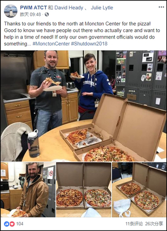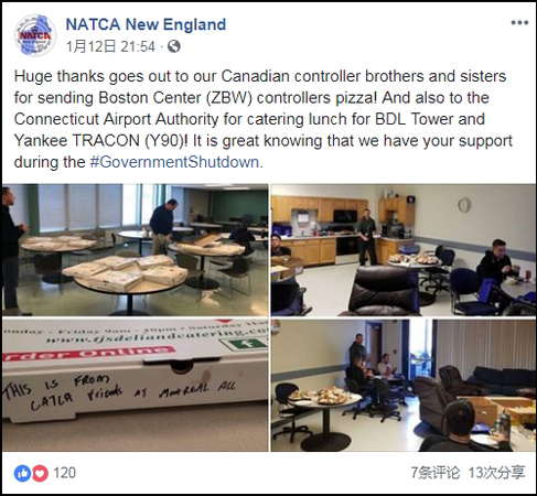 原标题:美国空管员无薪工作 加拿大同行为其送上350份披萨