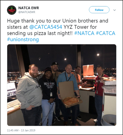 全美空管人员协会(ATCA)1月13日向多伦多皮尔逊机场的空管人员致谢 图源:推特