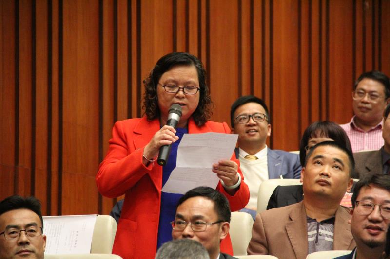 一袭红衣的黄洁薇委员,成功地吸引到了主持人的注意,也得到了发言机会,来自广州华侨博物馆的她呼吁加快打造粤剧艺术品牌的脚步。