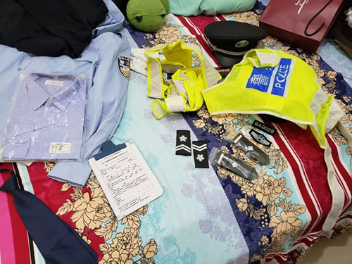 办案民警推测华某有可能采取变造号牌的方式逃避警方打击,转而查询牌照为“KFXXXX”的行车轨迹。果然不出所料!在事发当日,牌照号为“KFXXXX”的汽车出现在距离事发路段不远处,而车上的司机正是穿着“交警”制服的男子华某!2019年1月10日,民警在犯罪嫌疑人华某位于西青区精武镇的家中将其抓获。在其居住地,民警搜查出大量制服、反光背心、单警装备、警用肩章、胸标、警号、执法记录仪、??罡嬷サ鹊?。