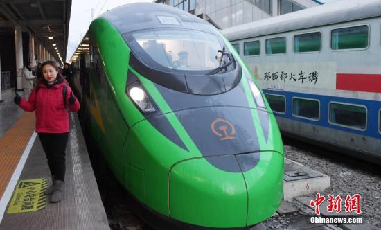 资料图:由兰州开往重庆北的D754次“复兴号”动车组列车8时55分自兰州站启程,标志着时速160公里动力集中“复兴号”动车组列车正式开跑兰渝线。中新社记者 杨艳敏 摄