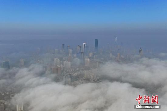 资料图:从南京上空航拍市区,雾霾与蓝天分界明显。中新社记者 泱波 摄