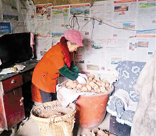 今年1月,刘令收到叔叔发来的一张照片,照片上是奶奶在客厅里安了一口缸子,缸里装满了红薯。叔叔告诉她说:“你奶奶让我给你说,红薯保存得好好的哟,过年肯定吃得到。”