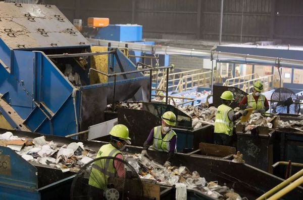 ▲美国马里兰州埃尔克里奇,工人在废物回收厂内分类垃圾。