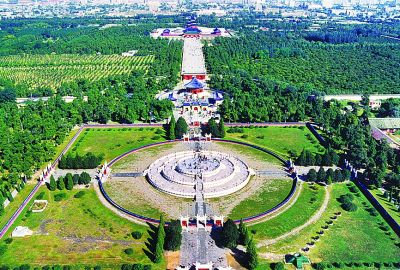 在北京城南,离紫禁城不远,有一座宏伟的建筑——祈年殿,像天外来客掩映在松柏之间。在它的南边,是汉白玉栏杆筑起的三层祭坛。串起这两座宏伟建筑的,是一条长360米、宽30米的神道,其他建筑或在这条中轴线上,或沿这条中轴线左右对称、依次铺排。