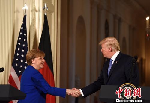 资料图:特朗普与默克尔出席联合记者会。