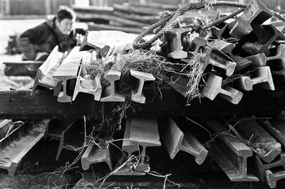 百年钢轨乱堆放 锈迹斑斑侵铭文