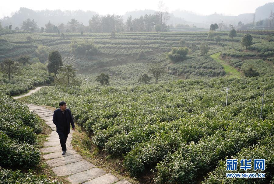 1月7日,村支书王兴强走在陕西省宁强县肖家坝村的茶园里。