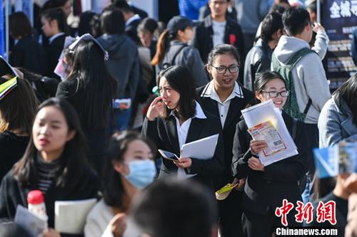 资料图,毕业生在招聘会上着正装求职。中新社记者 任东 摄