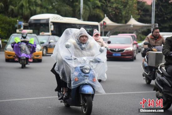 资料图,寒潮来袭,市民在雨中骑行。王以照 摄