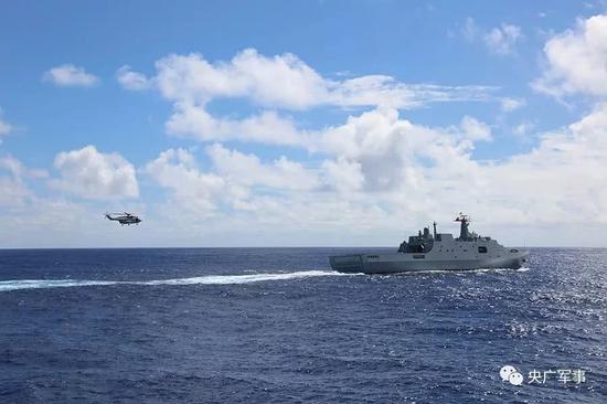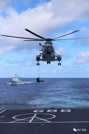 南部战区海军远海联合训练编队日前在中太平洋某海域,展开了一场??招淞τ妊萘?,检验部队在远海大洋遂行多样化军事任务和应对突发事件的能力。