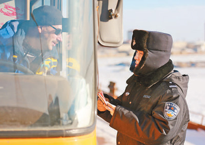| 2月7日,黑龙江黑河出入境边防检查站民警在检查入境客车,维护“国门”的安全畅通。 方 圆 刘 松摄影报道 |