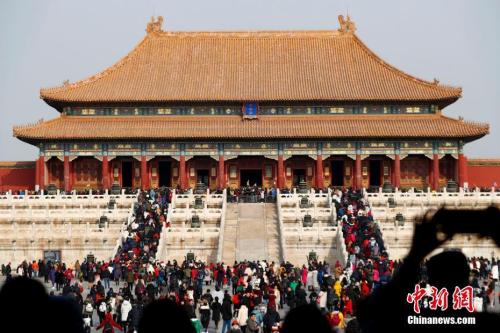2月5日农历正月初一,北京故宫博物院人头攒动,大批市民进宫过大年。中新社记者 富田 摄