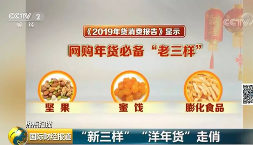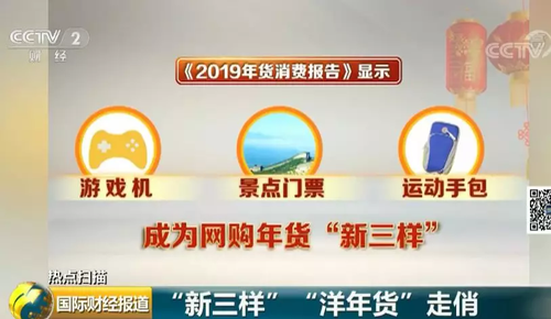 《2019年货消费报告》显示,坚果、蜜饯和膨化食品仍是网购年货必备“老三样”,但新需求正在诞生,在增速方面,游戏机、景点门票和运动手包成为网购年货的“新三样”。