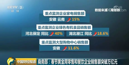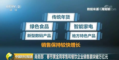 春节假期,传统年货、绿色食品、智能家电、新型数码产品、地方特色产品等销售保持较快增长。